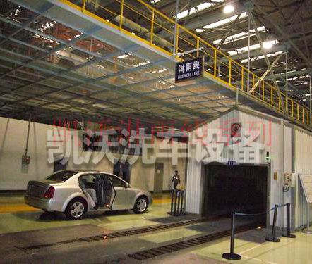 汽車天窗淋雨試驗線系統(tǒng)主要有噴淋系統(tǒng)、控制室、控制臺、過濾池、清水池,以及噴淋系統(tǒng)、污水處理系統(tǒng)、自動補水系統(tǒng)、安全保護(hù)裝置等組成。噴淋系統(tǒng):由負(fù)壓貯水罐、水泵、閘閥、電磁閥、主管路、分支管路、可調(diào)角度的不銹鋼噴嘴等組成。