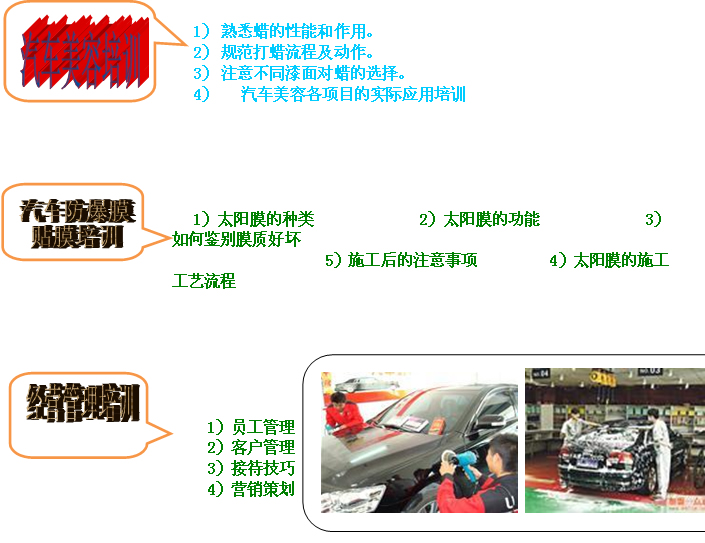 技術(shù)——始終將汽車美容養(yǎng)護(hù)各項新項目、新業(yè)務(wù)、新技術(shù)積極主動地向合作客戶推廣。